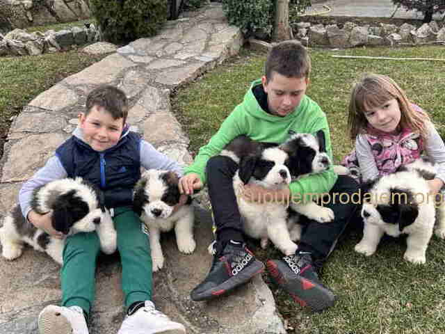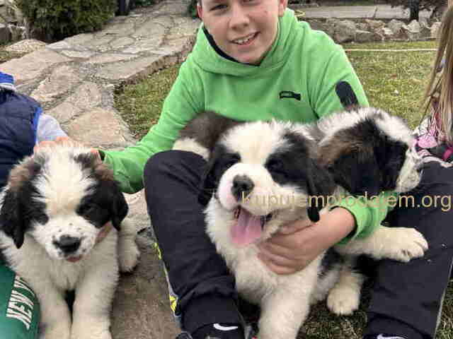 BERNADINCI štenad od vrsnih roditelja. Štenad su očišćena od parazita, vakcinisana. Oštenjeni 05.12.2024. Cena: ženke 300€ mužjaka 350€ Nebojša Kostić, 35210 Rača Kragujevačka Tel/Viber: +381601330700