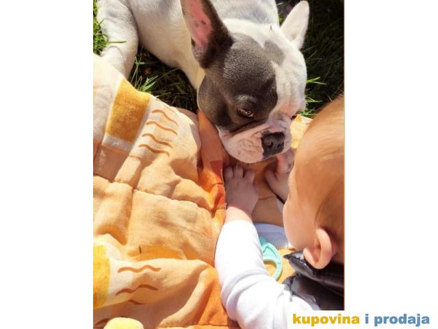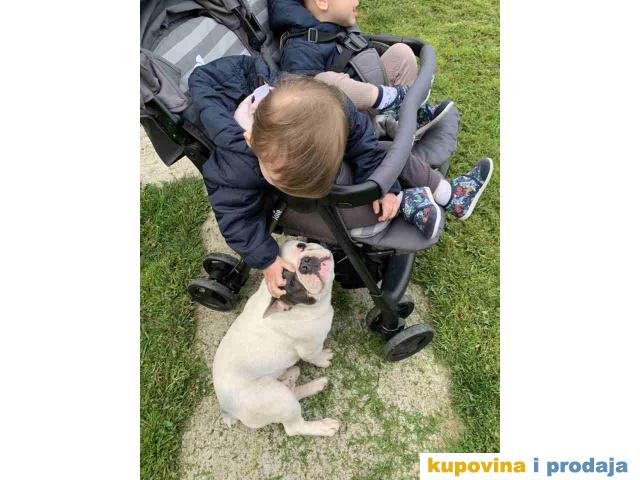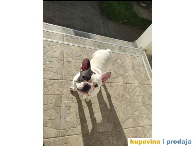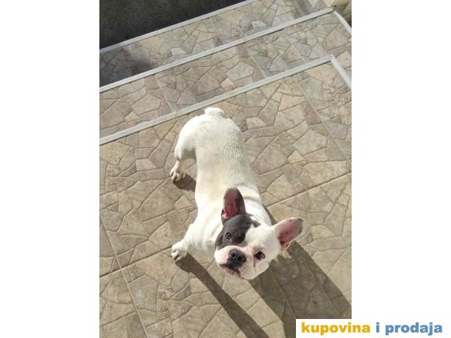 Blue Pied French BULDOG prelep muzjak, prelepe gradje, star 20 meseci. Čisto beli sa plavom flekom preko oka. Bleu pied vrsta Francuskog buldoga. Predobre naravi, sa decom fantastičan. Bez ijedne zdravstvene manje, potpuno zdrav pas. Za ostale informacije kontakt