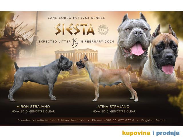 Renomirana odgajivačnica Siesta FCI - 7754 prima rezervacije za štence kane korso stare 2 meseca iz kombinacije: