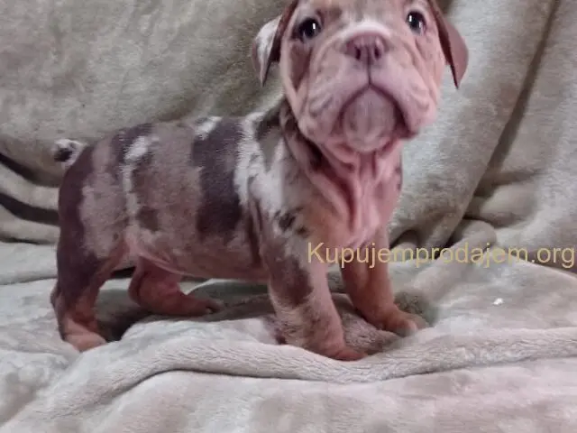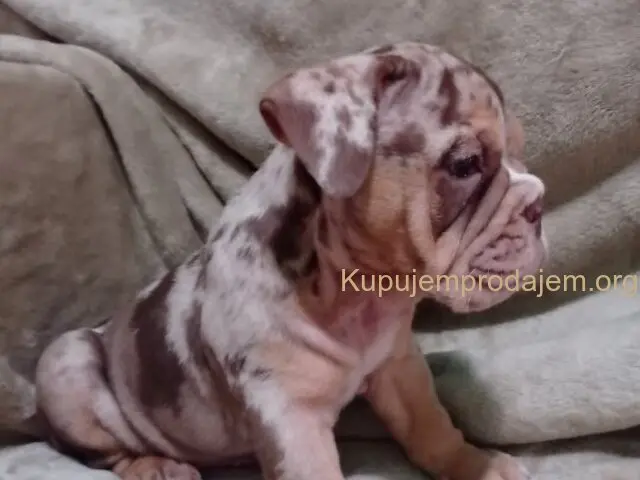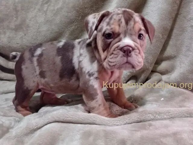 Prodajem zenkicu choko merle engleskog buldoga, Stara 8nedelja, vakcinisana ociscena od parazita, odgojena pod kucnim uslovima Roditelji su U nasim vlasnistvu, informacije na telefon 0628936787. ili na Viber 0621762577