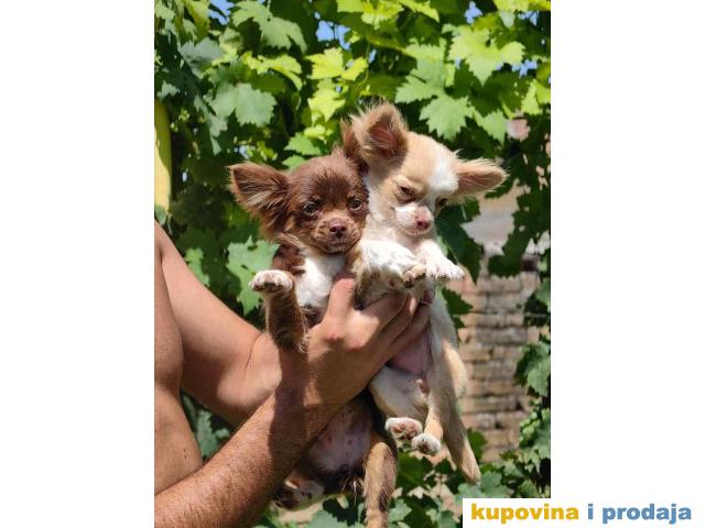 ČIVAVE aplehead micro do 1kg dugodlake 3 ženska šteneta, primili sve vakcine, teški 500 g, stari 3,5 meseci, spremni za novi dom Izrada pasoša, mikročip. Moguć transport po celom svetu. Redovno vakcinisani i čišćeni od parazita Miloš, Zemun/Beograd Viber,whatsapp. +38162562915