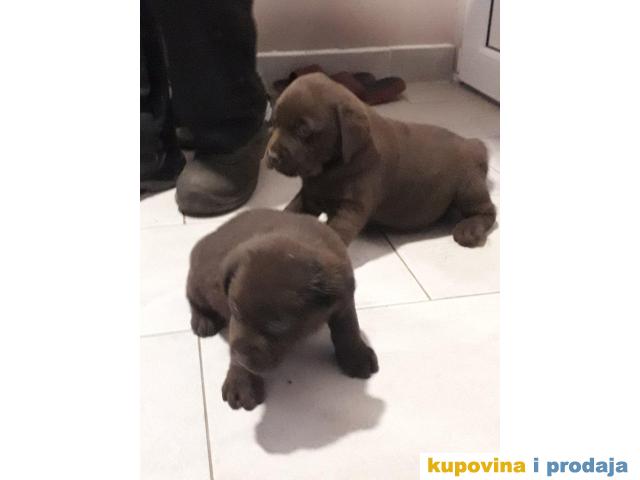 Cokoladni Retriveri, 3 muska i 1zensko, stari 6 nedelja ocisceni od parazita, vakcinisani protiv stenecaka. Poseduju rodovnike. Roditelji vruhunski.