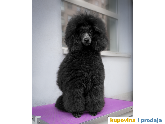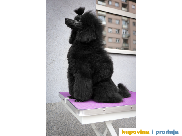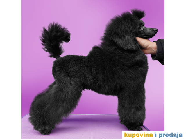 Dostupan muzjak crne patuljaste pudle visine 30 cm star 6,5 meseci. Roditelji su sampioni, genetski testirani i poreklom su iz najpoznatijih  odgajivacnica na svetu.Otac je Smash Jp Start Dash ( Smash Jp K x Smash Winner Takes it All) majka Spectra of Vilma Black Swan (Kudos Kaktus x Blonde Ambition Top Stiel).