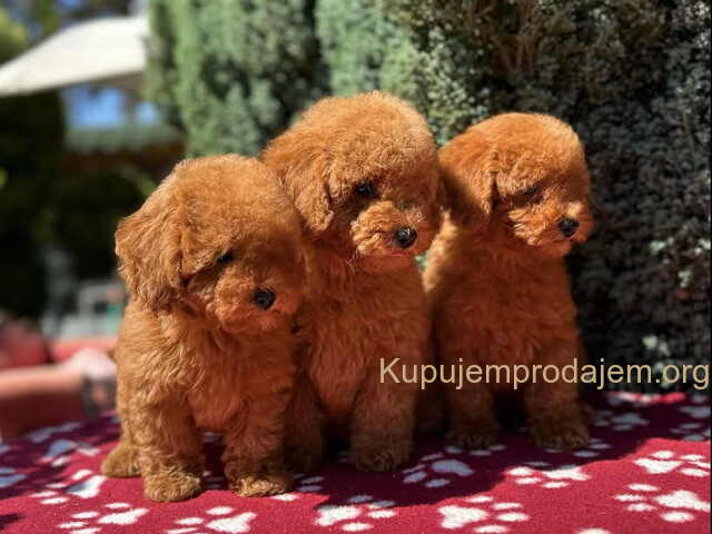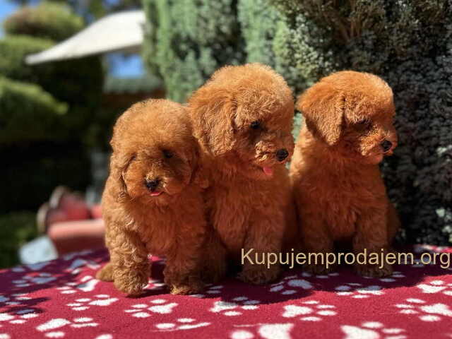 U ponudi prelepi štenci crvene toy pudle, očišćeni od parazita, naviknuti na deci i kućne uslove i naučeni da vrše nuždu na pelenu.Roditelji poseduju rodovnike i mogu se videti. Pudle se ne linjaju, idealne su za stan i osobe koje imaju alergije.Moguća dostava po dogovoru po celoj SRB i EU. I izrada pasosa SRB i EU.