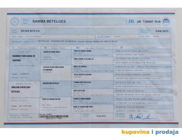 Doberman ženka na prodaju. 2,5 godine stara. Mladi šampion Srbije.