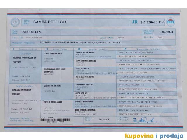 DOBERMAN ženka na prodaju. 2,5 godine stara. Mladi šampion Srbije. Samba Betelges (Maximus From Haus Emperor x Irinland Barselona Betelges) DCM - Carrier, ED1 - Clear, HD - A, ED - 0 Tel: +381(0)6757570 Dobrivoje, 26343 Izbište/Vršac