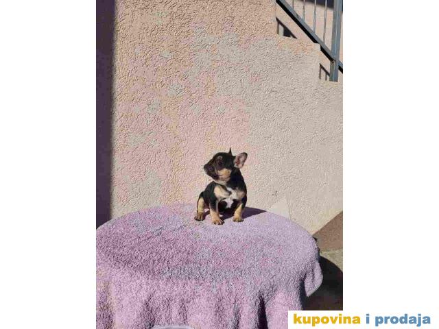 Dostupna zenkica FRANCUSKOG BULDOGA black&tan dva ipo meseca stara primila je 2 vakcine pasos i cip po zelji kupca za ostale informacije