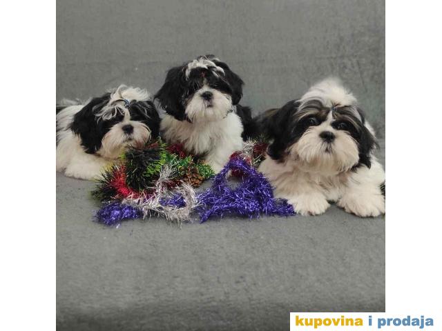 Dostupni štenci Shih Tzu rase, stari 3 meseca, uredno primljene 3 vakcine, 2 mužjaka i 1 sitna ženka, Posebno izdvajam prvobirano štene 1 mužjaka, star 6 meseci, koji nije preuzet i takodje je dostupan. Rasa je divna i stabilnog karaktera. Za prodicu i decu najverniji prijatelji. Samo za odgovorne ljubitelje!