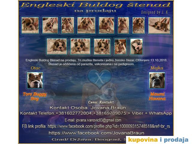 Engleski Buldog štenad na prodaju. Tri muška šteneta i jedno žensko štene. Oštenjeni 13.10.2018.