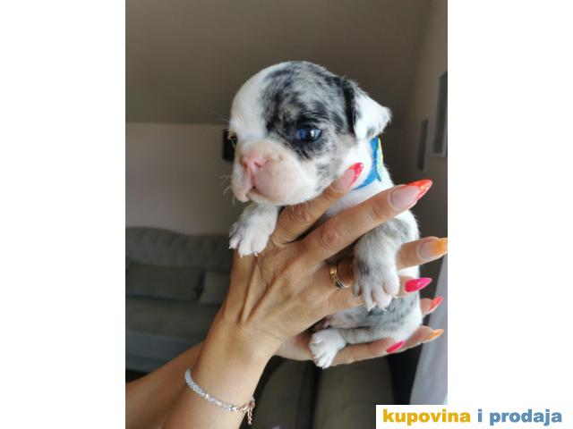 Registrovana odgajivačnica pasa "Happy Puppies" ima u ponudi stence francuski buldog egzotične boje blue, blue merle, belo merle kao i nekoliko odraslih zenki za prodaju oko godinu i godinu i po dana. Uz kupovinu nasih pasa dobija se potrebna dokumentacija i račun za kupljenog psa jer smo registrovani kao firma. Vise slika i videa mozete videti na nasem IG i Fb profilu "Happy Puppies Kennel".