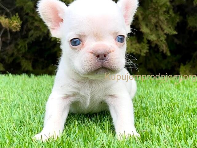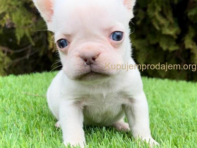 Plavi i beli štenci francuskog buldoga, roditelji u vlasništvu.