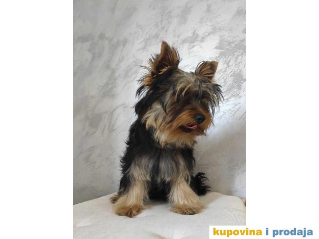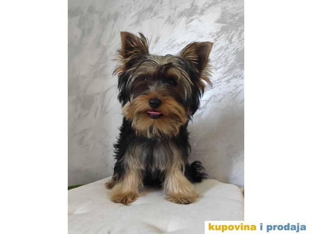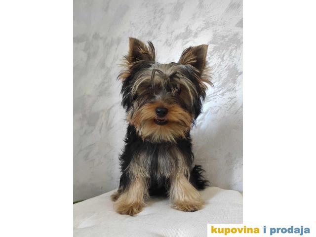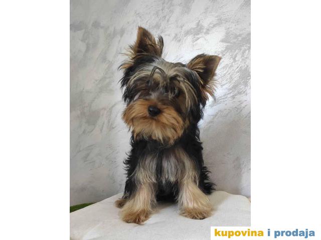 Na prodaju ženako štene jorkija staro 4 meseca, vakcinisano i revakcinisano, redovno je čišćeno od parazita, poseduje rodovnik. Štene je sitnijeg rasta. Zainteresovanima šaljem video zapis šteneta. Oba roditelja su u mom vlasništvu (ne prelaze 3kg).