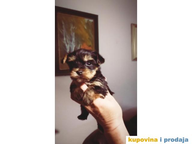 Štenci jorkija oba pola, stari 6 nedelja, očišćeni od parazita i vakcinisani, sa pedigreom. Mogućnost dostave u sve zemlje na Balkanu.