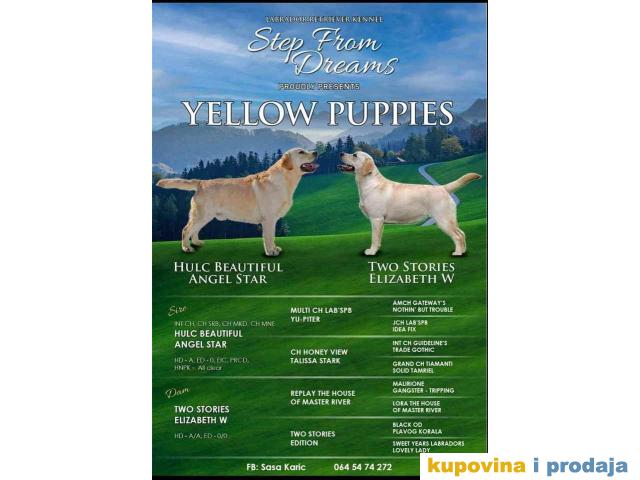 Labrador Retriver vrhunski štenci Registrovana odgajivačnica Labrador Retrivera “STEP FROM DREAMS” FCI 6240 ima u ponudi prelepe štence žute boje, oštenjeni 09.03.2024. godine. Više puta tretirani od unutrašnjih parazita, vakcinisani, sa svom potrebnom dokumentacijom. U leglu imamo 4 mužjaka I 2 ženke. Roditelji štenaca sa urednim snimcima laktova I kukova I genetskim testovima. Saša Karić, Milisava Vukovića 12, 15000 Šabac Tel/Viber: +381(0)645474272