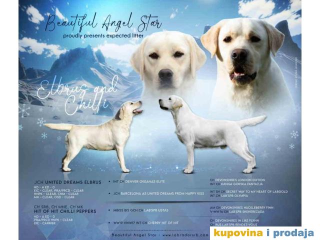 Majka: Ch Srb/Mne/Mkd Hit of Hit Chili peppers (Int.Ch Lab'Spb Ustas & Int.Ch. Cherry Hit Of Hit) Hd-A, ED-0, EIC-clear, PRA-clear Štenci će biti vakcinisani i revakcinisani. sa potpunom dokumentacijom. Informacije možete dobiti: