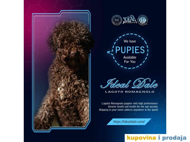 Odgajivacnica Ideal Dale koja se bavi odgojem pasa rase Lagotto Romagnolo od 2009 godine, nudi Vam mogucnost da rezervisete za sebe i svoju porodicu jedno od najlepsih cistokrvnih stenaca rasnih predstavnika rase Lagotto Romagnolo. Ideal Dale odgajivacnica sa iskustvom i tradicijom Vam daje garanciju na genetsko zdravlje, te zdravlje samog steneta u trenutku preuzimanja sertifikovano veterinarskom dokumentacijom. Uz svako obavezno cipovano stene, dolazi i potpuna veterinarska dokumentacija, te rodvnik kao dokaz o poreklu i samoj registraciji steneta.
