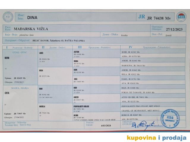 Prodajem 3 zenke madjarske vizle, stare 5 meseci, 3 vakcine primile. Roditelji lovni radni psi.