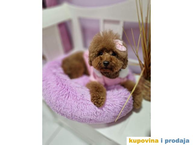 Malene bebice TOY PUDLE, aprikot i crvene, spremen za preuzimanje. Vakcinisani su i ocisceni od parazita. Odvojeni od majke, naučeni na pelenicu i da jedu granulice. Odgajani su u kućnim uslovima i pružena im je sva ljubav i nega koju očekujemo i od vas. Pudle se ne linjaju i nemaju neprijatnih mirisa. Jako su pametne i privržene, poslušne. Nisu lajave. Uz bebice dobijate kako kompletnu dokumentaciju, tako i svu prateću opremu za asm dolazak u Vaš dom. Činijice za hranu i vodu, podmetač za  obavljanje nužde, hrana, omiljena igračkica. Za sve informacije pozovite