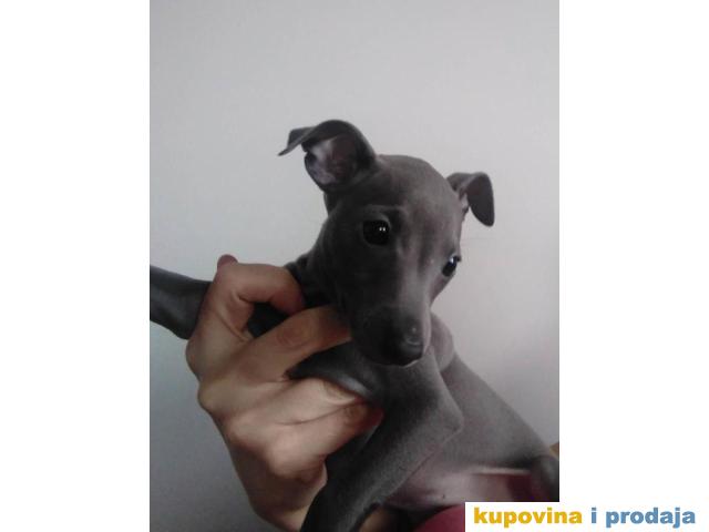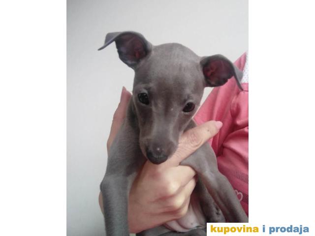 MALI ITALIJANSKI HRTOVI Ženkica sive boje, okoćena: 27.04. 2023. god. Oba roditelja imaju plavi gen. Oba roditelja imaju DNA test. FCI pedigre.