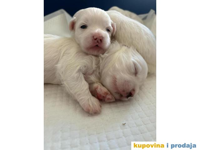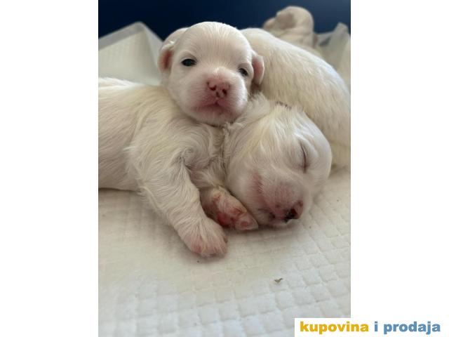 Na prodaju leglo vrhunskih čistokrvnih maltezera. Od roditelja i predaka mnogostruko nagrađivanih. Vrhunske krvne linije. Čistokrvni, čisto bele boje, umiljati, od početka naviknuti na kontakt sa ljudima. Ne lijanjaju se tako da su pogodni za stan ili kuću.