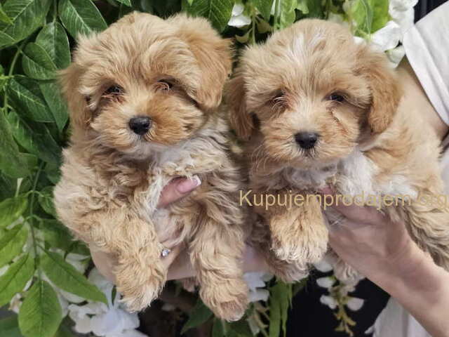 Maltipoo stenci spremni za preuzimanje. Od mame mini maltezera, i tate crvene toy pudle. Starosti 2 meseca. Vakcinisani i ocisceni od parazita. Nauceni su da jedu granulice, odgajani su u kucnim uslovima. Nauceni na pelenicu. Socijalizovani, vole da se igraju ,da se maze i divne su naravi. Moguca je dostava uz dogovor. Za vise informacija pozovite - cena po dogovoru! Tel/Viber: +381(0)062216269 Jovana, Novi Sad