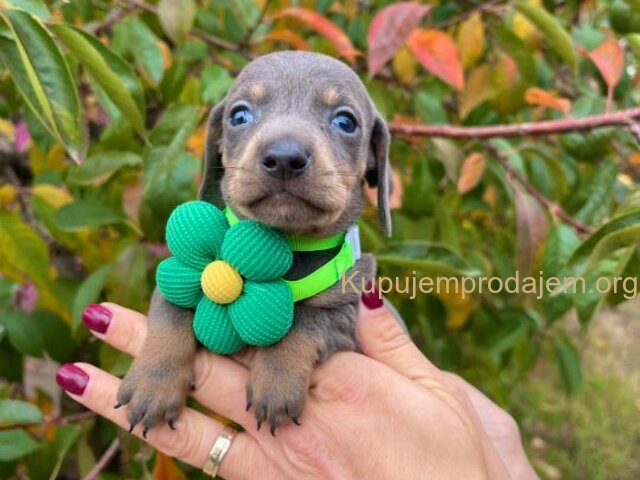 Odgajivacnica pasa "Happy Puppies" ima u ponudi prelepe stence mini jazavicara egzoticne boje kratkodlake i dugodlake. Imamo oba pola. Radimo pasos i cipujemo psa direktno na ime buduceg vlasnika. Preuzimaju se vakcinisani i ocisceni od parazita. Nasi stenci su kontrolisani redovno od strane veterinara i zdravi. Mozete nas zapratiti na Instagramu i Fb-u "Happy Puppies Kennel" i uvek videti sta imamo od stenaca i nas rad takodje. Kontakt tel:+381693580030 Marina i Marco Dentelli, Novi Sad (Srbija)