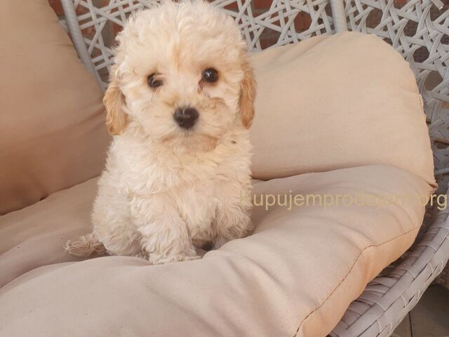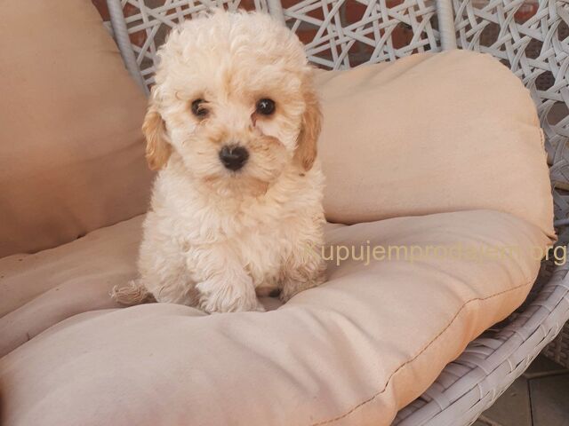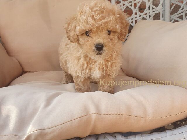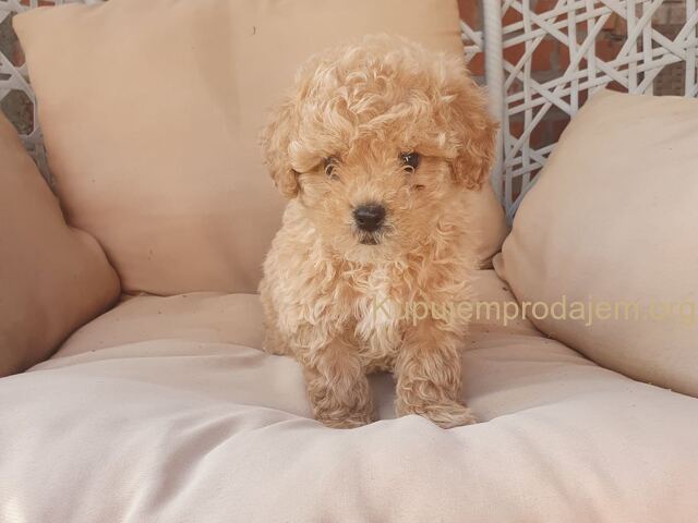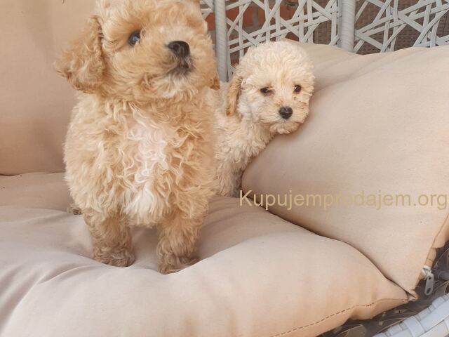 Aprikot decak i devojcica mini pudle spremni su za preuzimanje.