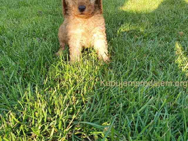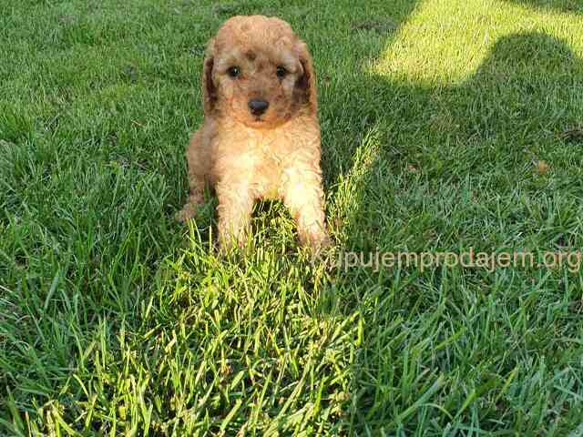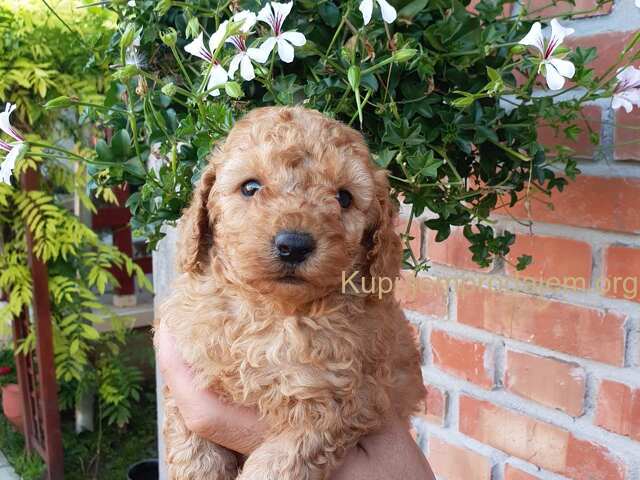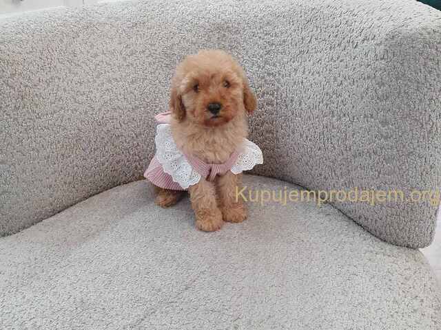 Aprikot decak i devojcica mini pudle spremni su za preuzimanje.