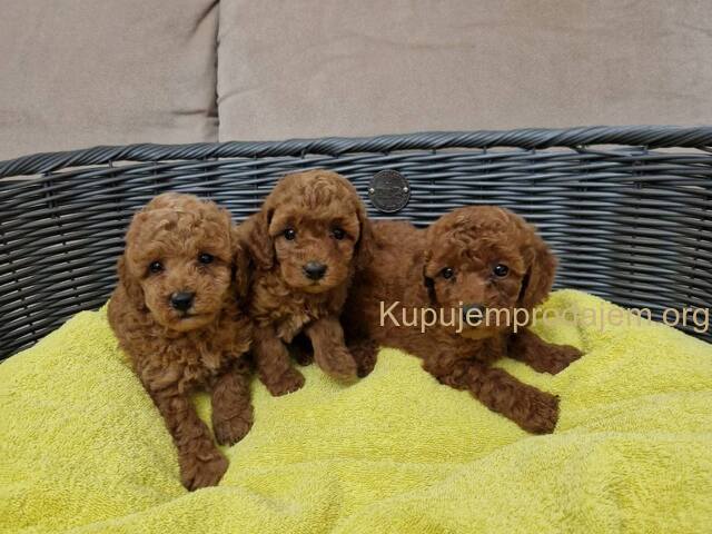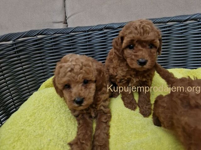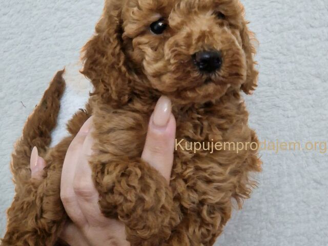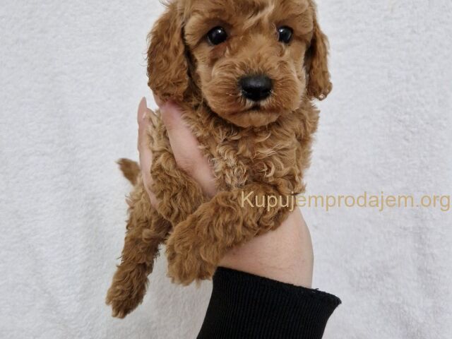 Aprikot decak i devojcica mini pudle spremni su za preuzimanje.