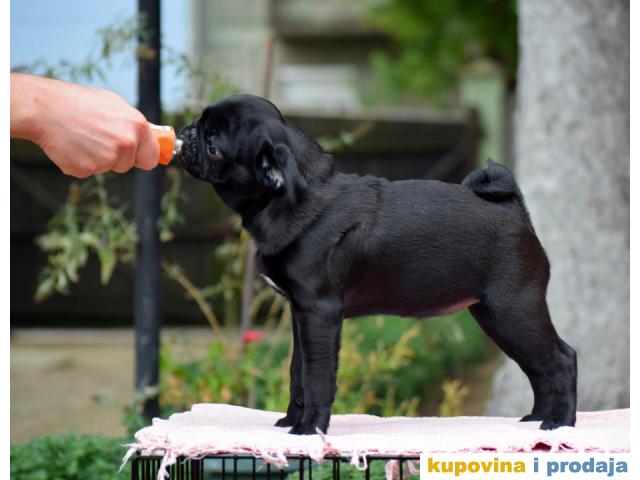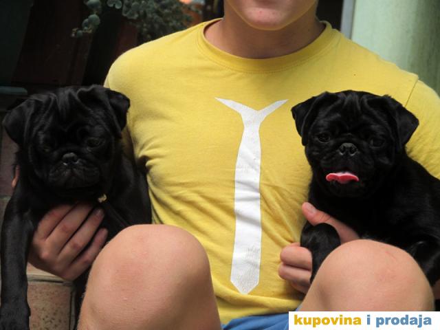 Mops, dve crne zenke, stare 3 ipo meseca, revakcinisane, profesionalno odnegovane. Naučene na život u kući, dobrog temperamenta, dovoljno socijalizovane za svoj uzrast. Od kvalitetnih roditelja, dobrih krvnih linija.