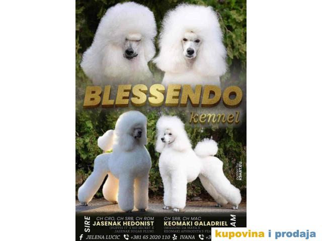Odgajivačnica "Blessendo" iz Niša predstavlja štenca - mužjaka Kraljevske - standard (velike) pudle, rodjenog 07. 5. 2022. za ljubimca. Odgajan u kućnim uslovima, kompletno vacinisani i spreman za novi dom. Cena pristupačna.