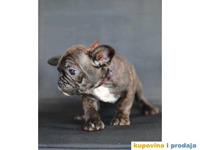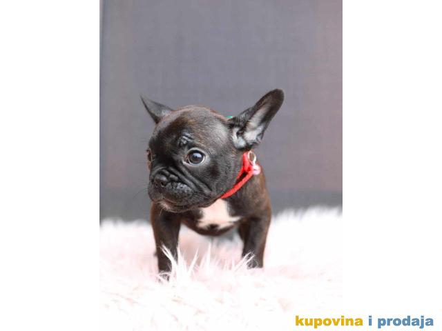 Na prodaju 6 štenca Francuskog budloga, 4 devojčice i 2 dečaka. Starosti dva meseca, sa papirima, vakcinisani. Cena: Sivi 400€ crni i šareni 300€ (moguć dogovor) Za više informacija pozovite +381(0)641288347 Radisa Simeonović, 12320 Žagubica