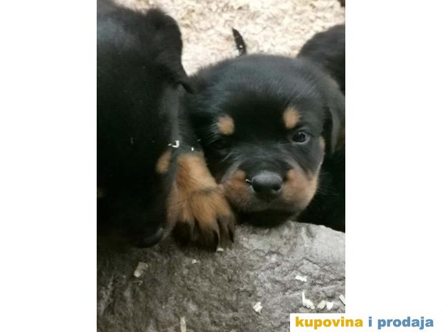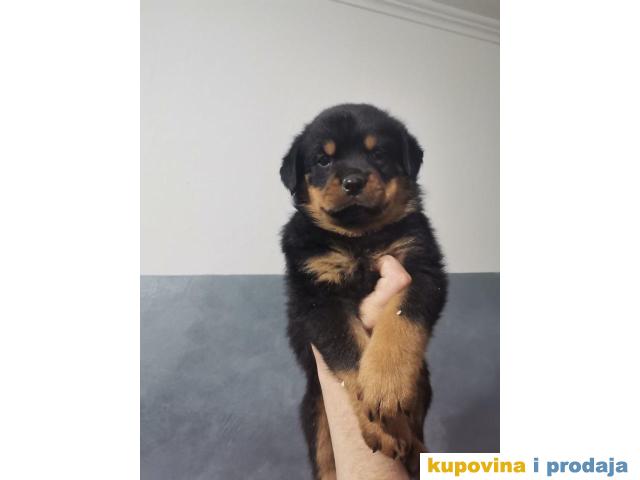 Na prodaju ROTVAJLERI, lepo odgajeni, veseli štenci, Nemačke krvne linije. Štenci su vakcinisani, stari mesec ipo dana, očišćeni od parazita, živahni i spremni za novi dom.