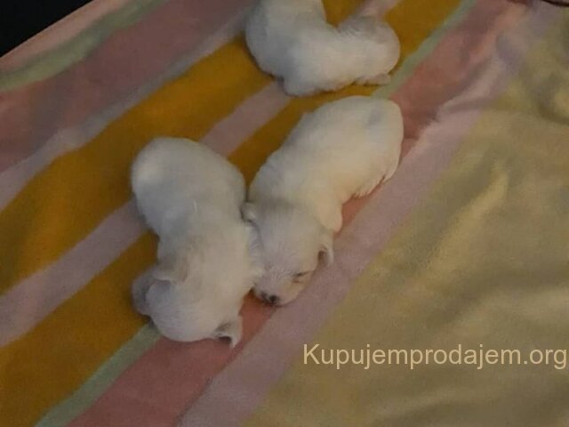 Na prodaju stenci mesanci maltezera i patuljastog spica sa odlicnom pedigreom, snezno beli, duge dlake Prosli prvi veterinarski pregled, negovani u kucnim uslovima sa mnogo ljubavi i paznje. Redovno ce se obavljati ciscenje od parazita, glista kao i sve potrebne vakcine i revakcine Majka: M-Lena(Misty)Laura De Fortuna De Sivac ocenjena odlicnom ocenom cistokrvna maltezerka Otac: Grof I Salvador TOP-OP cistokrvni patuljasti nemacki spic od izlozbenih roditelja CAC,CACIB Stenci ce biti spremni za preuzimanje polovinom januara Rezervacije u toku Za sve ostale informacije kontakt +381(0)628891313 poziv, poruke i na viber,wa Tamara, Beograd