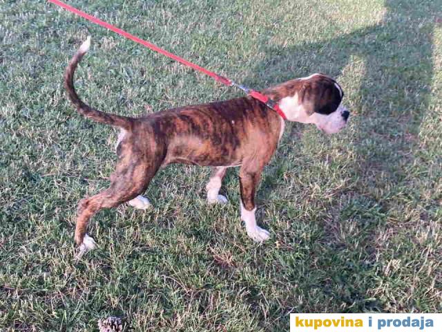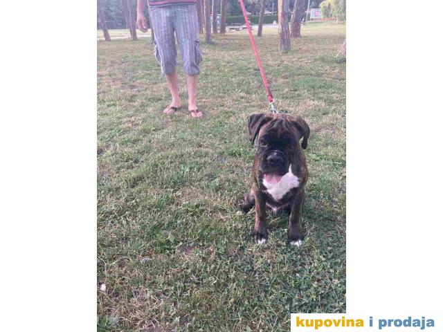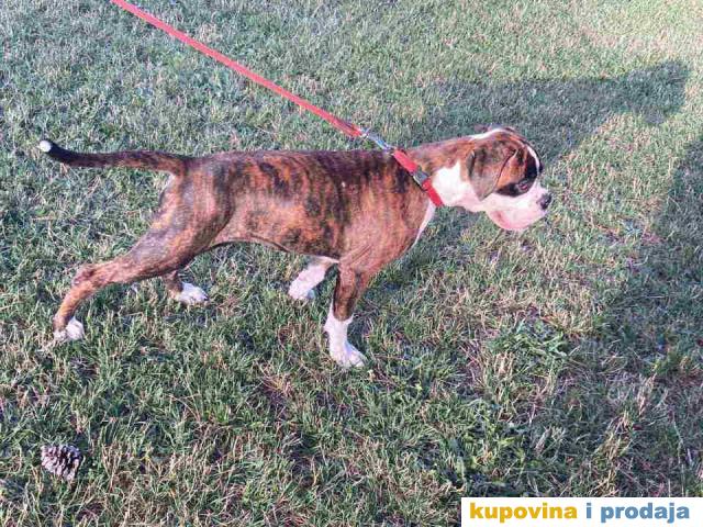 Na prodaju stenci Nemackog BOXERA U ponudi jedan muzijak i dve zenkice. Stenci su stari cetiri i po meseca, zasticeni , extra ocuvani, odgajaju se u stanu, socijalizovani, poslusni na komande, rodovnici su u proceduri. Otac ima ocenu Can cacib Bob, 5. Cena: muzjak 400€, zenke 350€ Tel/Viber: +381(0)603808501; 0603808502 Dejan, Niš