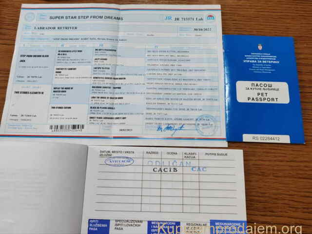 Na prodaju ženka LABRADORA, šampionskog porekla, oštenjena 30.10.2022, iz odgajivačnice Step From Dreams sa urednim snimkom laktova i kukova HD-A, ED-0.Vakcinisana, čipovana, sa pasošem.Nosi žuti gen. Otac: Step From Dreams Black Jack (Multi ch Benvenuto Little Wish x Fantasy Fly Campary Rouge).Majka: Two Stories Elizabeth W (Replay The House Of Master River x Two Stories Edition). Saša Karić, 15000 Šabac Tel/Viber: +381(0)645474272