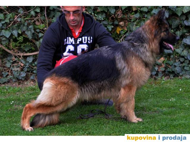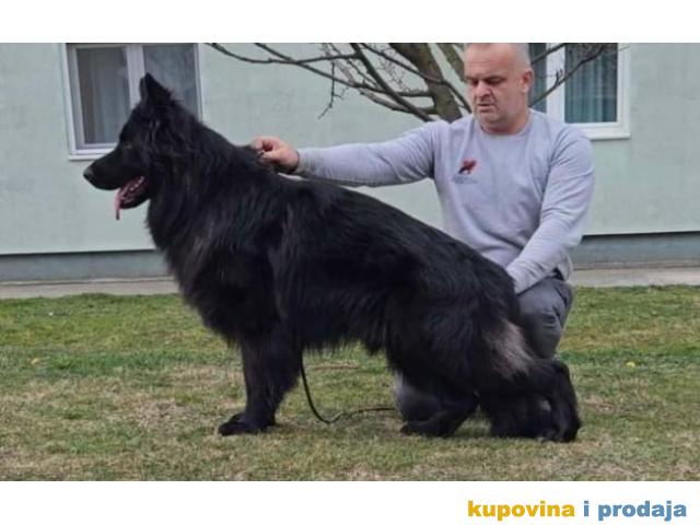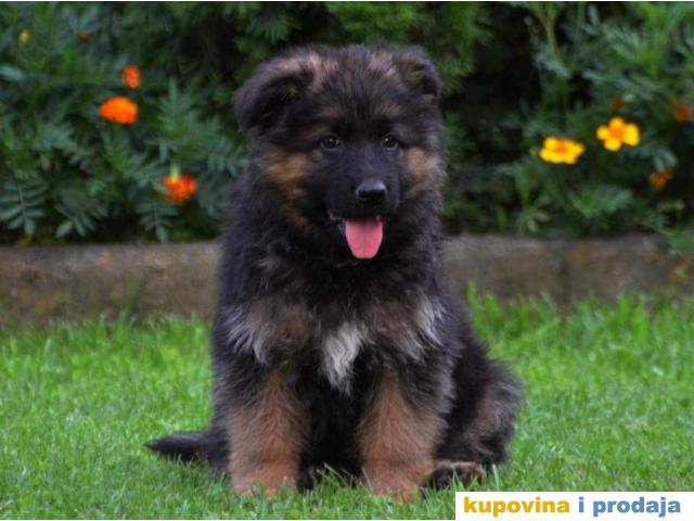 Stenci nemackog ovcara duge dlake, dva muzijaka crne boje i zenka crveno crna, vakcinisani, revakcinisani.