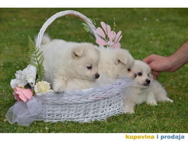 Nemački špic, štenci snežno bele boje, sitne građe, tri mužjaka i dve ženke.