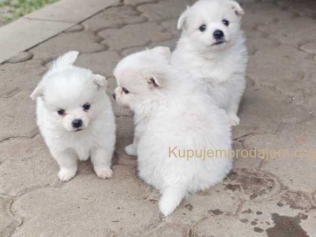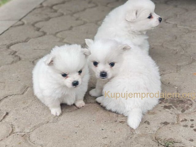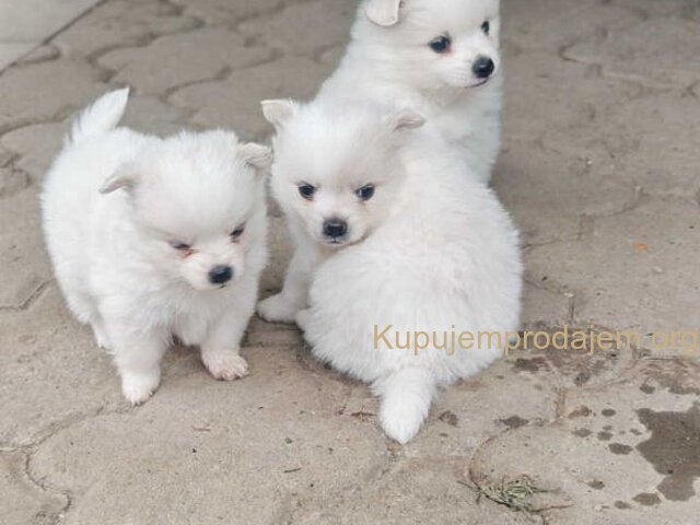 Nemački špic, štenci snežno bele boje, sitne građe, ženskog pola. Oštenjeni 26.12.2025. godine, očišćeni od parazita, sledi vakcina, spremni za preuzimanje od 06.02.2026. godine. Dugogodišnje iskustvo u odgajanju rase Nemački špic. Za više informacija i fotografija kontakt. Kontakt telefon +381693825080 (Viber, Whats app...). Danka, Kraljevo, R. Srbija.