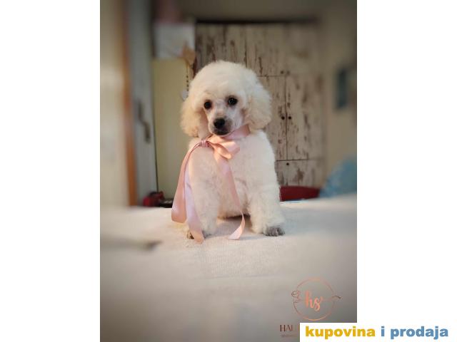 Patuljasta bela pudla, ženka, oštenjena 01.10.2023. od roditelja genetski i zdravstveno testiranih. Uz psa dobijate svu veterinarsku i kinološku dokumentaciju.