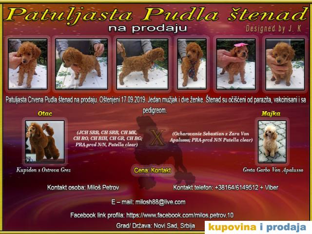 Patuljasta Crvena Pudla štenad na prodaju. Oštenjeni 17.09.2019. Jedan mužjak i dve ženke. Štenad su očišćeni od parazita, vakcinisani I sa pedigreom.