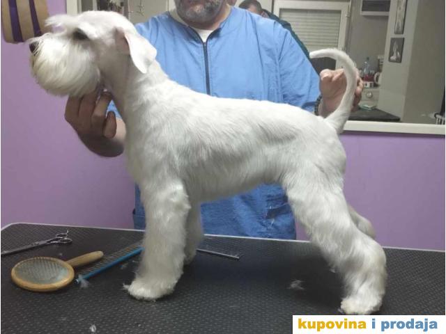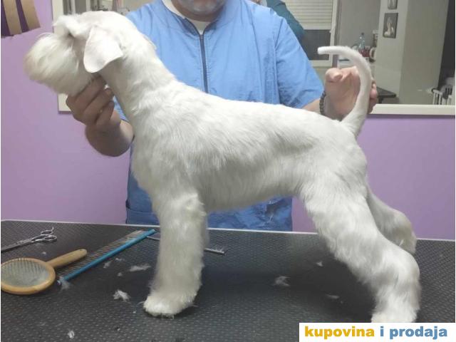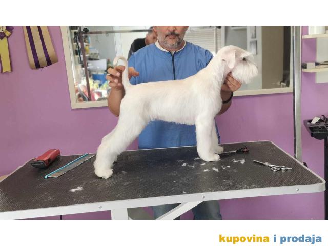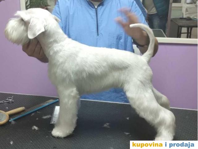 Prelepi štenci patuljastog belog šnaucera, rodovnici, potvrde o vakcinaciji,stečene higijenske navike, odlične anatomije, oštenjeni 26.06.2023god.