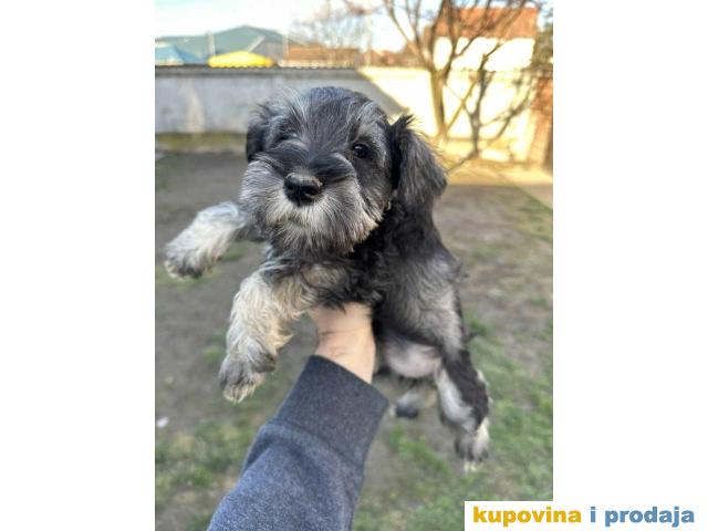 PATULJASTI ŠNAUCER Ministure Schnauzer Oštenjeni 21.11.2023. spremni za preuzimanje. Boja biber so. Štenci se preuzimaju uredno vakcinisani i sa svom pratećom dokumentacijom. pametni, živahni, patuljasti šnaucer je jedna od najzahvalnijih rasa za decu i uzgoj u kući i stanu. Ne linjaju se i nemaju neprijatne mirise. Moguć dogovor oko prevoza u zemlji i inostranstvu.