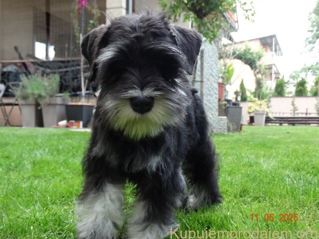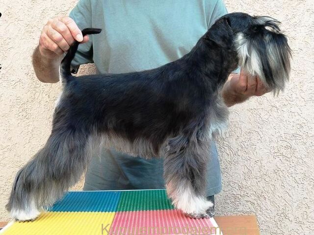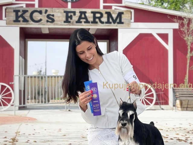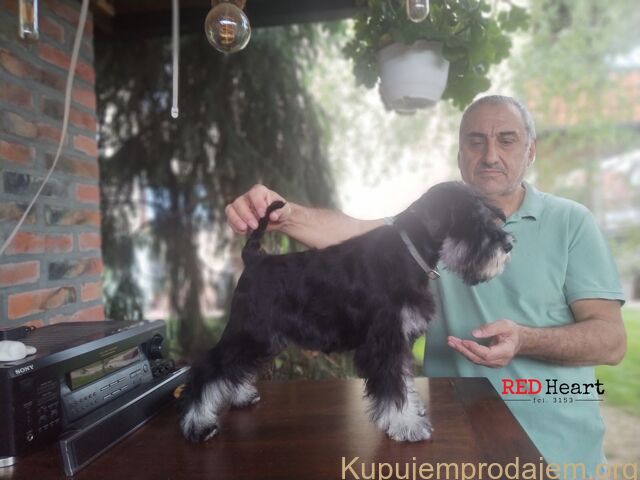 Na prodaju izuzetno kvalitetno žensko štene crno-srebrnog patuljastog šnaucera iz renomirane odgajivačnice Red Heart, staro 3,5 meseca.