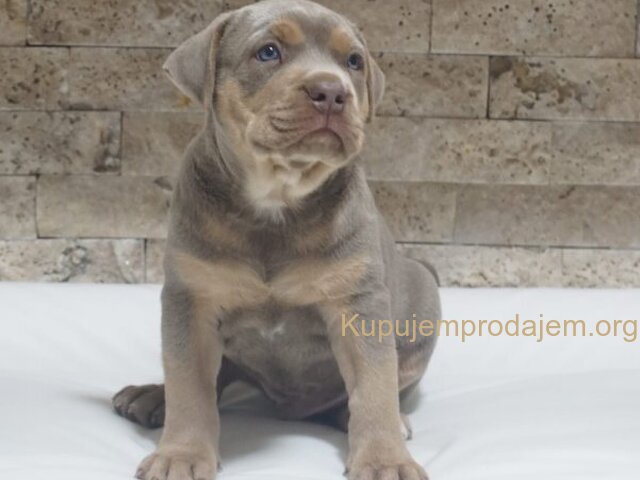 Na prodaju muško štene Američkog Pit Bul Terijera, boja lilac tricolor, majka blue, otac lilac tricolor. Ostenjeno 29.08.2025. Preuzimanje Za posle 2 revakcine. Mogucnost izrade papira.Za vise informacija poziv ili poruka Cena 1500e +381612788678