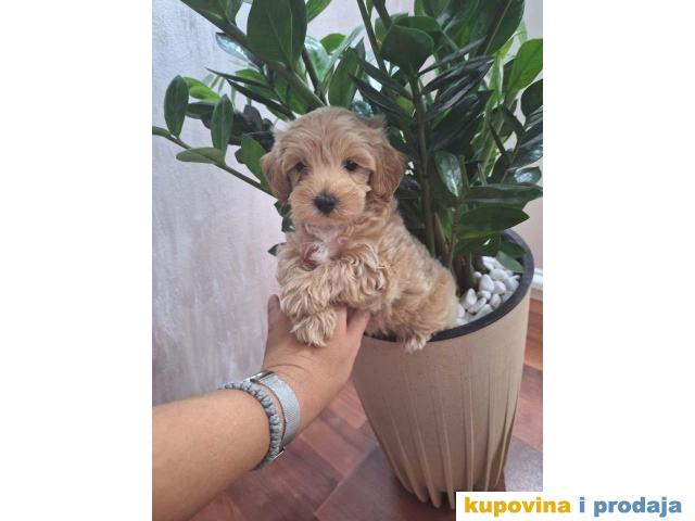 Prelepi štenci Maltipoo spremni su za preuzimanje. Odgajani su u kućnim uslovima, naučeni na pelenicu, jedu granulice. Vakcinisani su i zaštićeni od parazita. Veseli, razigrani, umiljati, brzo uče. Pogodni su za kuće i stanove. Ne linjaju se uopšte. Za sve informacije pozvati telefonom. Maja,Novi Sad Tel/Viber: +381(0)652095232