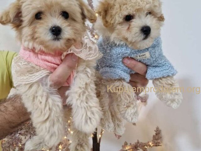 Preslatki maleni MALTIPOO stenci, spremni su za preuzimanje. Jako malog rasta, mama mini mini maltezer, a otac toy crvena pudla. Divnog su karaktera, ne linjaju se i nemaju neprijatnih mirisa. Odgajani su u kucnim uslovima a za vise informacija pozovite. Moguca dostava.