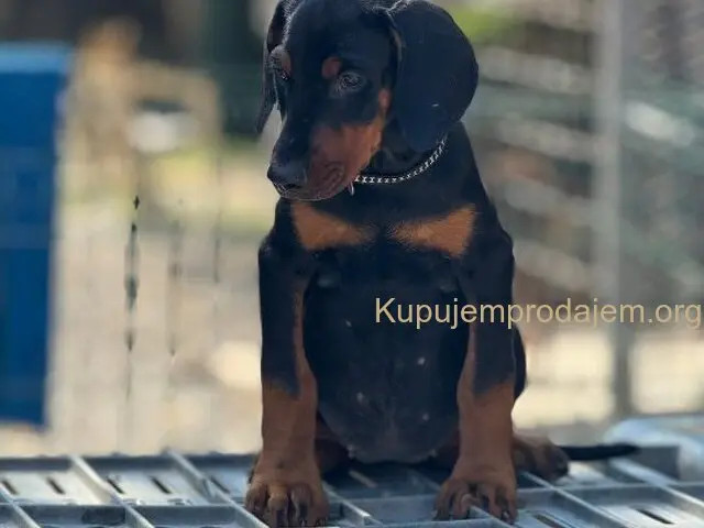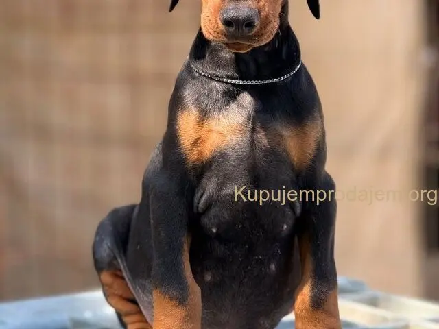 Prodaju se prelepi štenci dobermana, stari 3 meseca Štenci su zdravi, vakcinisani i očišćeni od parazita, odgajani u kućnim uslovima uz puno pažnje i ljubavi. -Čistokrvni -Od odličnih roditelja (moguće videti na licu mesta ili preko video poziva) -Socijalizovani, naviknuti na decu i druge pse -Spremni za preuzimanje odmah Idealni su kao porodični ljubimci, ali i kao čuvari. Doberman je pas poznat po svojoj odanosti, inteligenciji i zaštitničkom duhu. Mogućnost organizacije transporta. Lokacija: Obrenovac Kontakt: +38163231810 Slike i video po dogovoru (moguće slanje Viber/WhatsApp) Pročitajte više