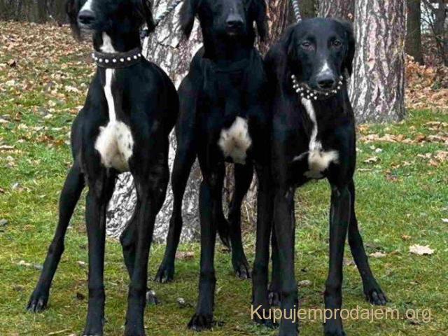 Saluki štenci, jedinstvena prilika Nudim četiri mužjaka crne boje, iranskog porekla … starih 10 meseci, rođenih u Holandiji i uzgajanih iz mog direktno uvezenog Saluki stada iz Irana. Moji Salukiji su originalne iranske izložbene vrste. Ove štence dobijate sa: - Kraljevskim holandskim FCI rodovnikom (G1) - EU pasošima - Mikročipovima za identifikaciju - Svim potrebnim vakcinama, uključujući važeću vakcinu protiv besnila na 3 godine Trenutno se nalaze u Nemačkoj, a mogu biti transportovani na vaša vrata po ukupnoj ceni od 1.200€ Ne propustite priliku da dočekate ove izuzetne Saluki štence u svom domu! Stevo, Nemačka Tel/Viber: +4915121172379