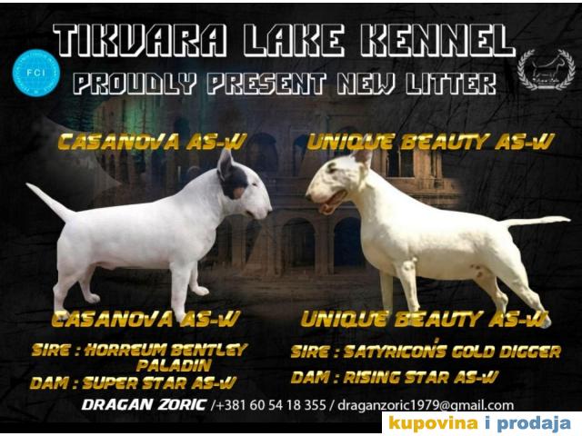 Odgajivačnica TIKVARA LAKE KENNEL FCI 7519 predstavlja vrhunske štence standard bull terijera slobodne za rezervaciju.